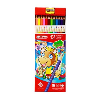 ดินสอสีไม้ 12 สี ตราม้า H-500 เป็นสีไม้แท่งสั้น ไส้สีเข้ม สดใส ไม่เปราะหักง่าย เหลาง่าย ใช้ได้กับกบเหลาทุกชนิด (พิเศษ มีกบเหลามาให้ในกล่อง) ตัวด้ามทรงหกเหลี่ยม จับได้ถนัดมือ จะระบายนานแค่ไหนก็ไม่เมื่อย ให้คุณหนูๆ สร้างสรรค์งานศิลปะได้อย่างไม่รู้จบ แถมยังได้รับรองมาตรฐานความปลอดภัยจากสารพิษ และปลอดภัยกับเด็กที่มีอายุ 3 ขวบขึ้นไปอีกด้วย
