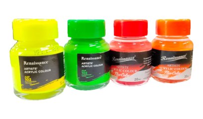 ชุดสีอะคริลิค เรนาซองซ์ ขนาด 12 มล. ต่อหลอด มีทั้งหมด 12 สี ถูกบรรจุอยู่ในหลอดอะลูมิเนียมที่มีความแข็งแรงใช้งานง่าย